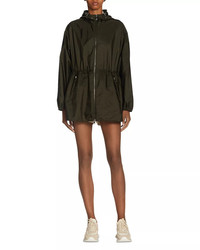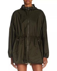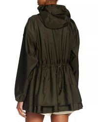 SIZE & FIT - Runs true to size; order your normal size - Designed for a slim fit - Model measurements: 5'10" height, 33" bust, 25" waist, 35" hips, wearing a size 1/small PRODUCT DETAILS - Attached hood with drawcord - Front zipper closure - Long sleeves with elasticized cuffs - Drawcord waist - Lined - Tiered hem - Imported Web ID: 5379330 MATERIAL & CARE - 100% nylon; lower lining: 100% nylon; hood lining: 100% nylon - Machine wash or dry clean