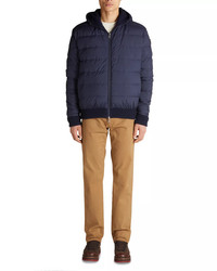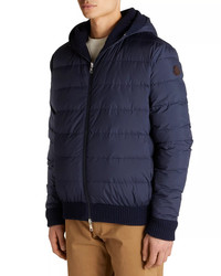 SIZE & FIT - Fits true to size, order your normal size PRODUCT DETAILS - Hood - Full-zip front closure - Long sleeves, ribbed cuffs - Leather logo badge at left sleeve - Two hand pockets - Reversible - Ribbed hem - Imported Web ID: 5130021 MATERIAL & CARE - Shell: 90% virgin wool/10% cashmere; lining: 100% polyester; fill: 90% down/10% feathers; logo badge: leather - Dry clean