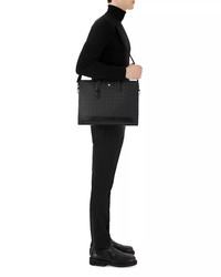 PRODUCT DETAILS - Two top handles - Detachable, adjustable shoulder strap - Dimensions: 14.6"L x 2.4"D x 11"H - Top zip closure - One main interior compartment, one interior zip pocket, two interior slip pockets, two interior pen loops - Space for A4-sized documents - Embossed texture, black metal fittings - Leather - Made in Italy Web ID: 4498739