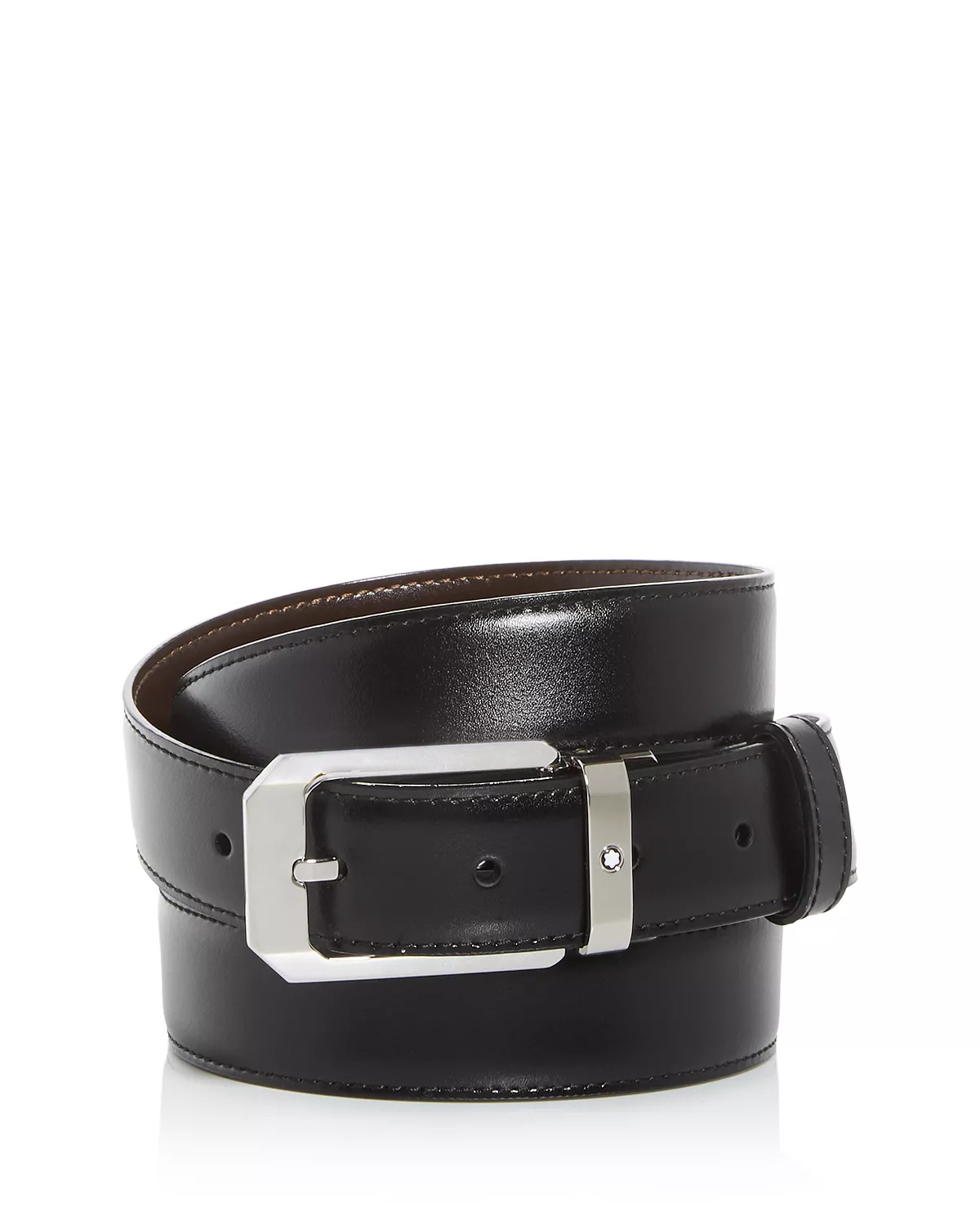 PRODUCT DETAILS - 1.25"W - Reverses from black leather to brown leather - Polished silver-tone buckle with signature emblem detail - Includes removable keeper in both black leather and brown leather - Order one waist size up - Leather - Made in Italy Web ID: 3570801