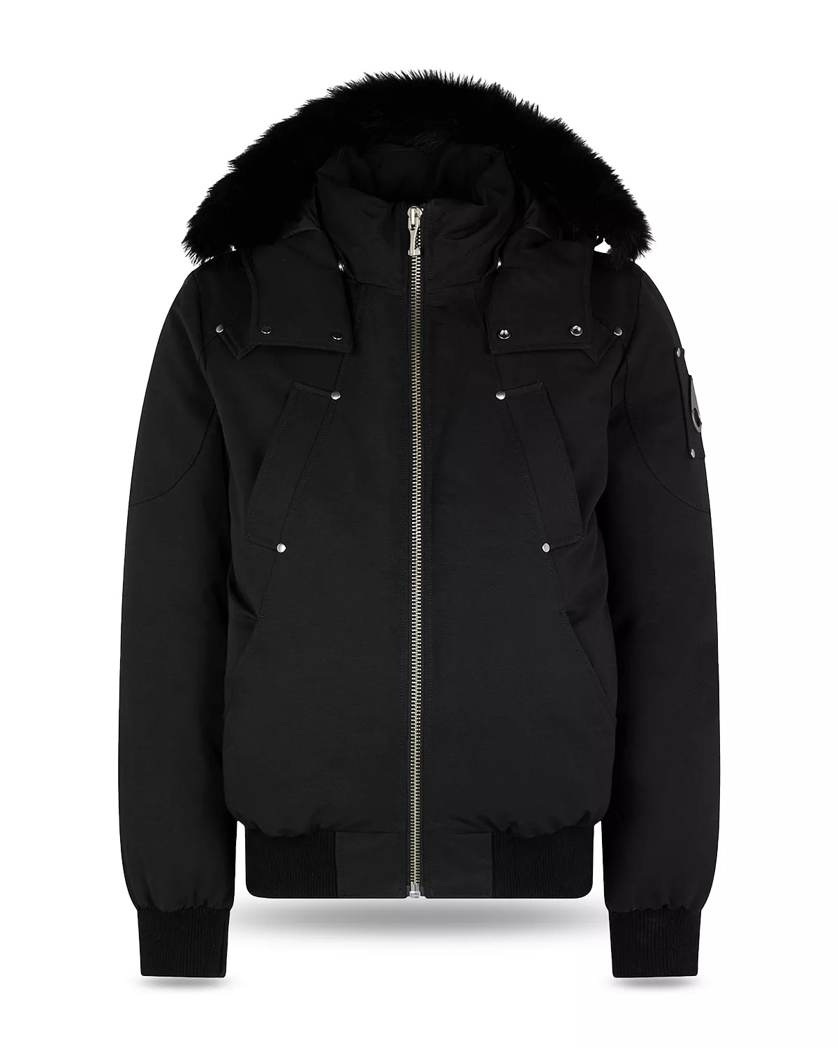 SIZE & FIT - Fits true to size, order your normal size - Designed for a regular fit PRODUCT DETAILS - Removable hood with snap closures and removable shearling trim - Down-filled stand collar - One-way full-zip front closure - Long sleeves, ribbed cuffs - Metal logo at left sleeve - Two lower front welt pockets, two chest welt pockets - Ribbed hem - Lined - Imported Web ID: 5720557 MATERIAL & CARE - Shell: 74% cotton/26% nylon; lining: 100% nylon; fill: 90% duck down/10% feathers; trim: genuine sheep shearling, origin: Spain, dyed - Machine wash