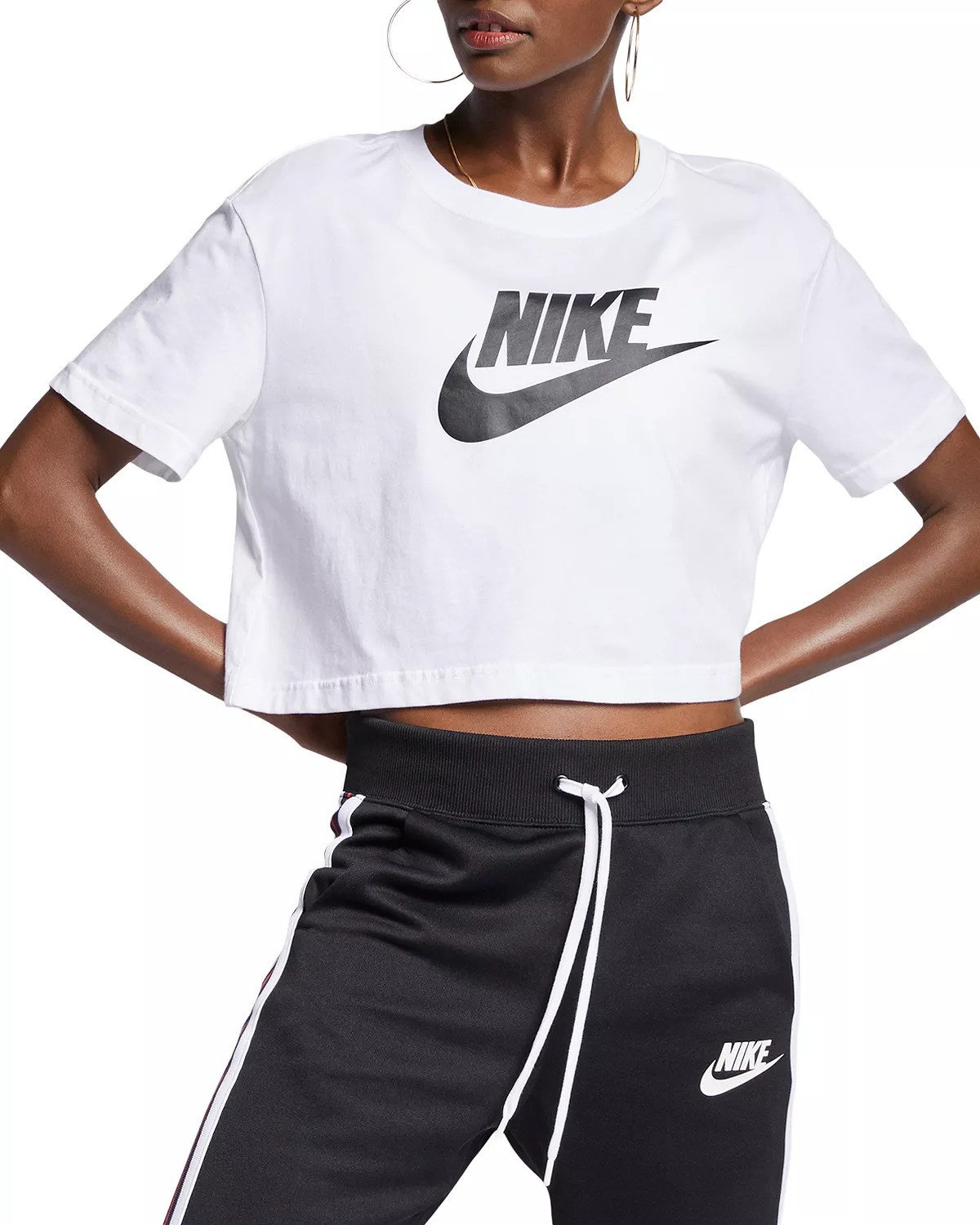 PRODUCT DETAILS - Fits true to size, order your normal size - Model measurements: 5'10" height, 33.5" bust, 23.5" waist, 34.5" hips, wearing a size small - Banded crewneck - Short sleeves - Front logo graphic - Cropped silhouette - Imported Web ID: 3078772 MATERIAL & CARE - 100% cotton - Machine wash