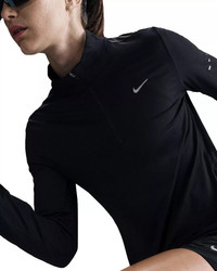 SIZE & FIT - Fits true to size, order your normal size - Model measurements: 5'10" height, 33" bust, 24" waist, 35" hips, wearing a size small PRODUCT DETAILS - Mock neck - Half-zip closure at front - Long sleeves with thumbholes - Dri-FIT wicking technology helps evaporate moisture - Logo at left chest - Imported Web ID: 5718987 MATERIAL & CARE - 88% polyester/12% spandex - Machine wash