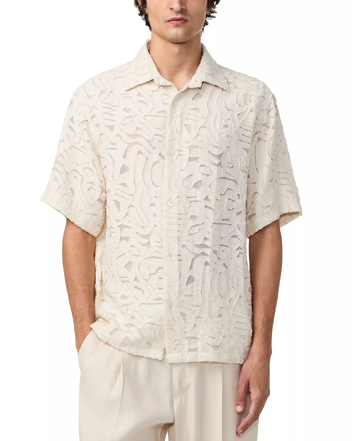 SIZE & FIT - Designed for a relaxed fit PRODUCT DETAILS - Point collar - Button front closure - Short sleeves - Jacquard patterned fabric - Made in Turkey Web ID: 5425495 MATERIAL & CARE - Viscose/polyamide - Machine wash