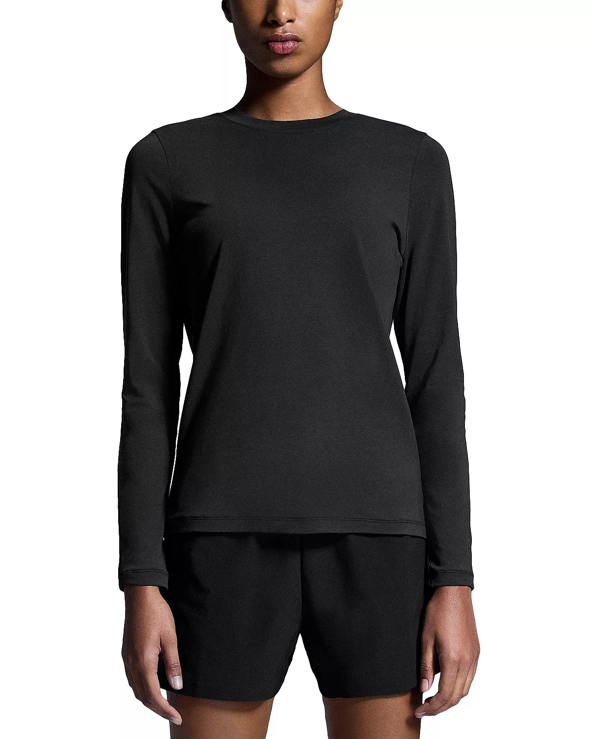SIZE & FIT - Fits true to size, order your normal size - Model measurements: 5'10" height, 33" bust, 25" waist, 35" hips, wearing a size small PRODUCT DETAILS - Crewneck - Long sleeves - Pullover style - Wicks away sweat for a fresher feeling workout - ACTIVITY MADE FOR: Low impact, travel, recovery - Imported Web ID: 5433385 MATERIAL & CARE - 46% polyester/46% cotton/8% elastane - Machine wash
