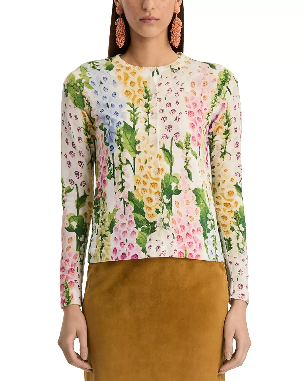 Printed Foxgloves Long Sleeve Cardigan