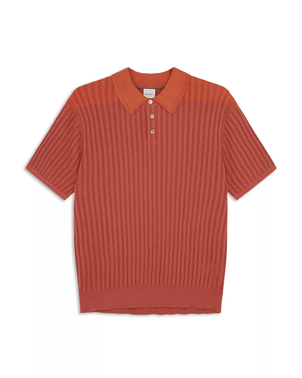 Ribbed Short-Sleeve Knitted Cotton Polo Shirt