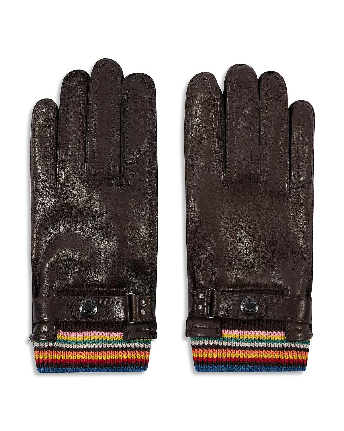 Brown Leather 'Signature Stripe' Cuff Gloves