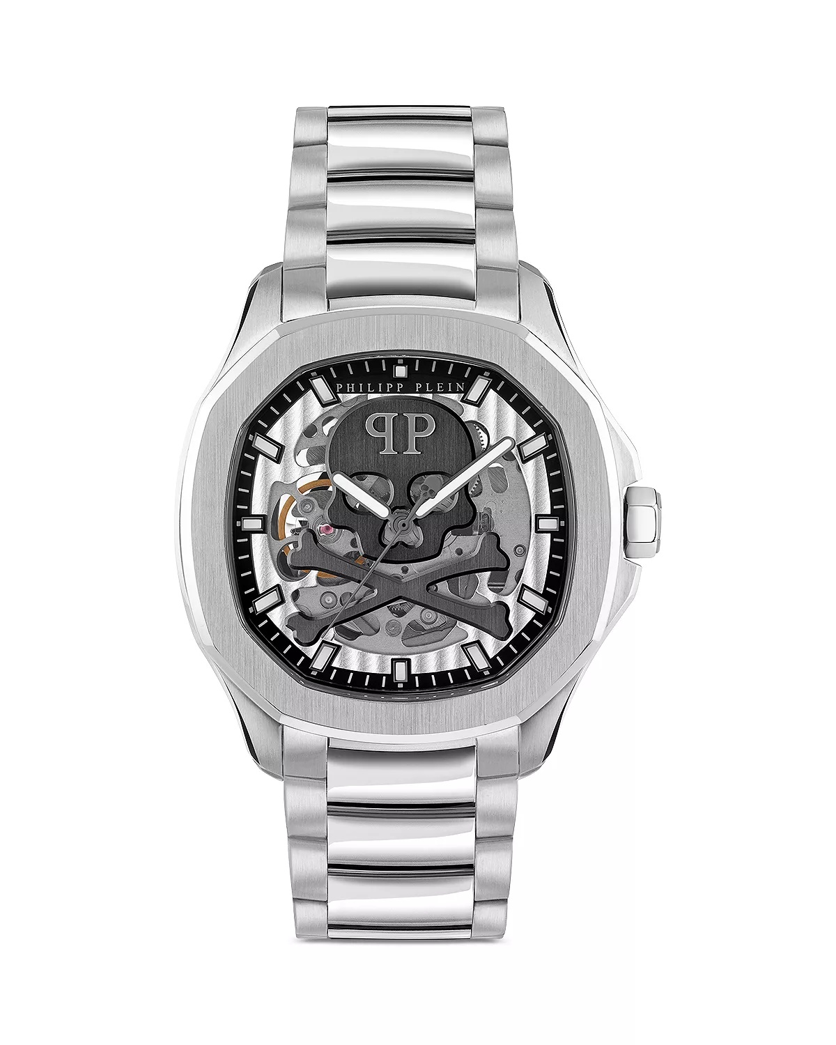 PRODUCT DETAILS - IP stainless steel; mineral crystal - Case size: 42mm - Deployant clasp closure - Water resistant to 5 ATM - Quartz movement - Black $kull motif dial - Stainless steel link bracelet - Manufacturer's 2-year limited warranty - Photo may have been enlarged and/or enhanced. - Imported Web ID: 4707545