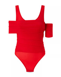 SIZE & FIT - Fits true to size, order your normal size - Model measurements: 5'10" height, 33.5" bust, 23.5" waist, 34.5" hips, wearing a size 40 PRODUCT DETAILS - Square neck - Cap sleeves, cold shoulders - Pull-on style - Full bottom coverage - Made in Italy Web ID: 5476014 MATERIAL & CARE - 90% polyamide/10% elastane - Dry clean or machine wash