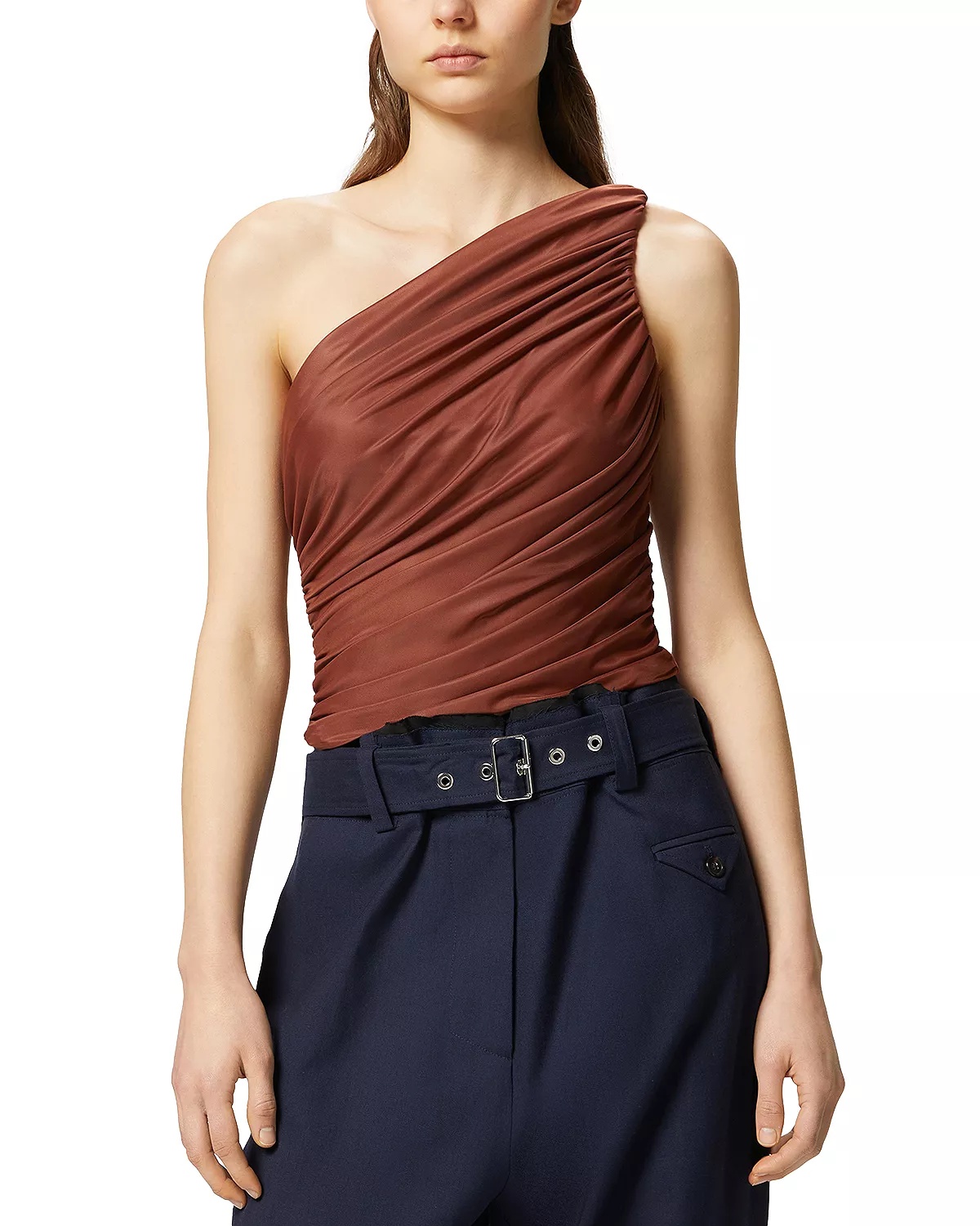SIZE & FIT - Fits true to size, order your normal size - Designed for a fitted silhouette - Model measurements: 5'7" height, wearing a size 40 IT/4 US PRODUCT DETAILS - Asymmetric neck - Sleeveless, one-shoulder design - Ruched at front - Lined - Made in Italy Web ID: 5476056 MATERIAL & CARE - 100% polyester; lining: 92% polyamide/8% elastane - Hand wash or dry clean