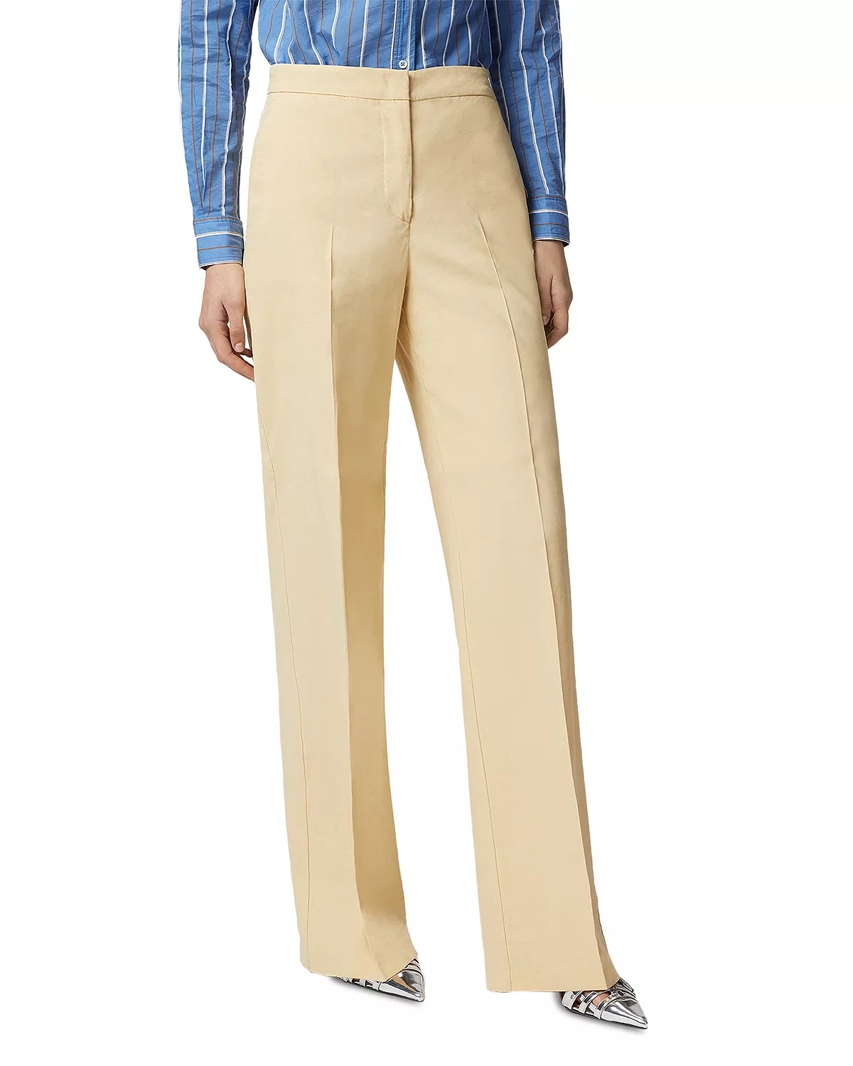 SIZE & FIT - Fits true to size, order your normal size PRODUCT DETAILS - Zip fly with concealed closure - Straight-leg silhouette - Two slant pockets at hips; two welt pockets at back - Darted waist - Central pleat both on the front and back of the leg - Made in Italy Web ID: 5476038 MATERIAL & CARE - 55% linen/42% viscose/3% elastane; lining: 67% acetate/33% polyester - Dry clean