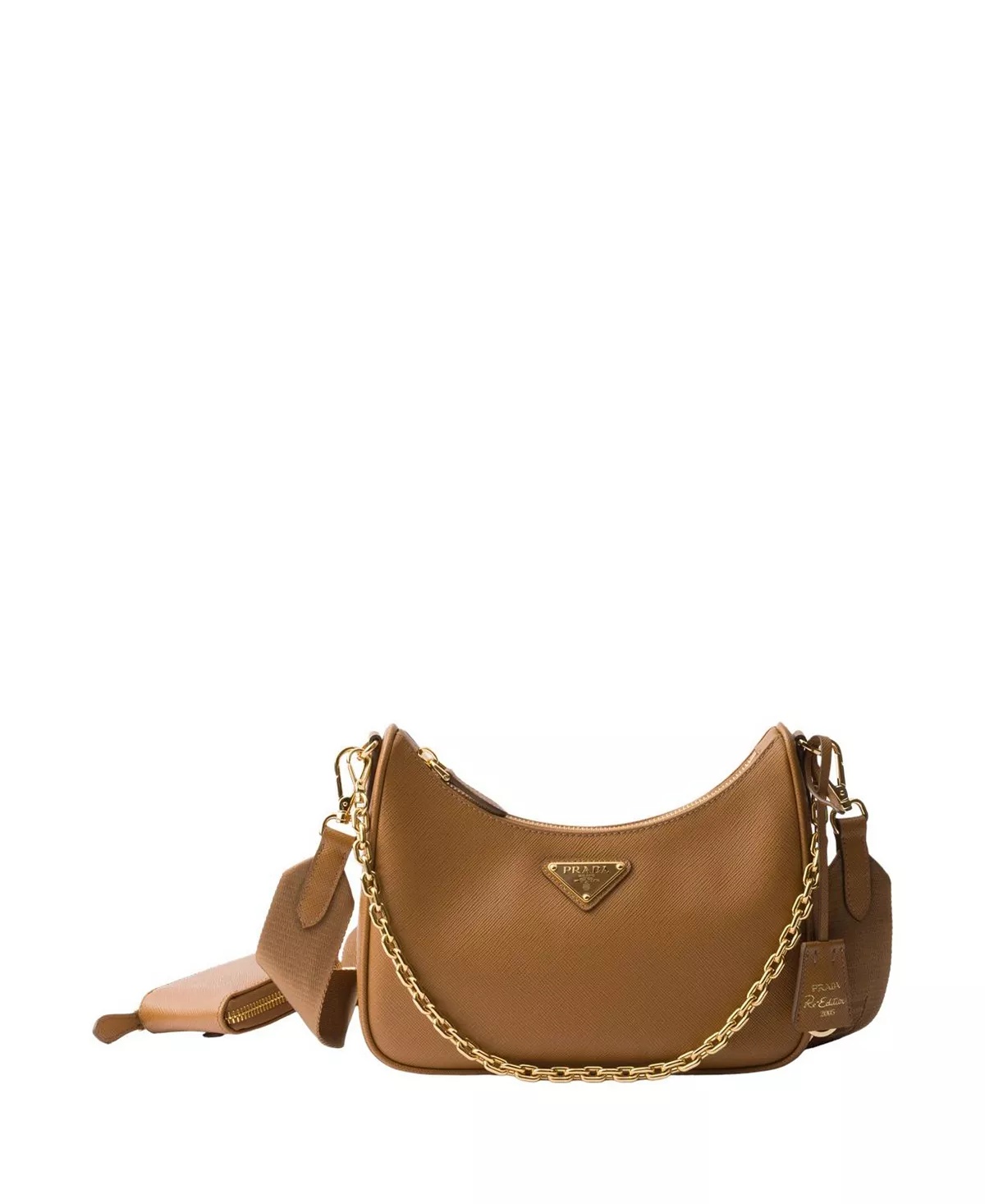 SIZE & FIT - Prada is a fashion brand that is a symbol of refined elegance and bold innovation. Known for its timeless sophistication and strong creativity, it combines high-quality materials with cutting-edge designs. - Prada introduces new aesthetic perspectives season after season, while remaining rooted in a solid heritage of craftsmanship. PRODUCT DETAILS - Dimensions: 2.4"W x 8.7"H x 7.1"L - Adjustable, detachable logo-print woven tape shoulder strap - Zipper closure - Removable leather zipper pouch and Re-Edition key ring - Logo-print nylon lining - Removable chain handle - Strap length: 29.5", Maximum length: 41", Minimum length: 27" - Maximum strap drop: 23.6", Minimum strap drop: 16.9" - Enameled metal triangle logo on the front - This bag can fit an iPhone 16 Pro Max, a small wallet and other small essentials. - Calfskin - Imported Web ID: 5560553