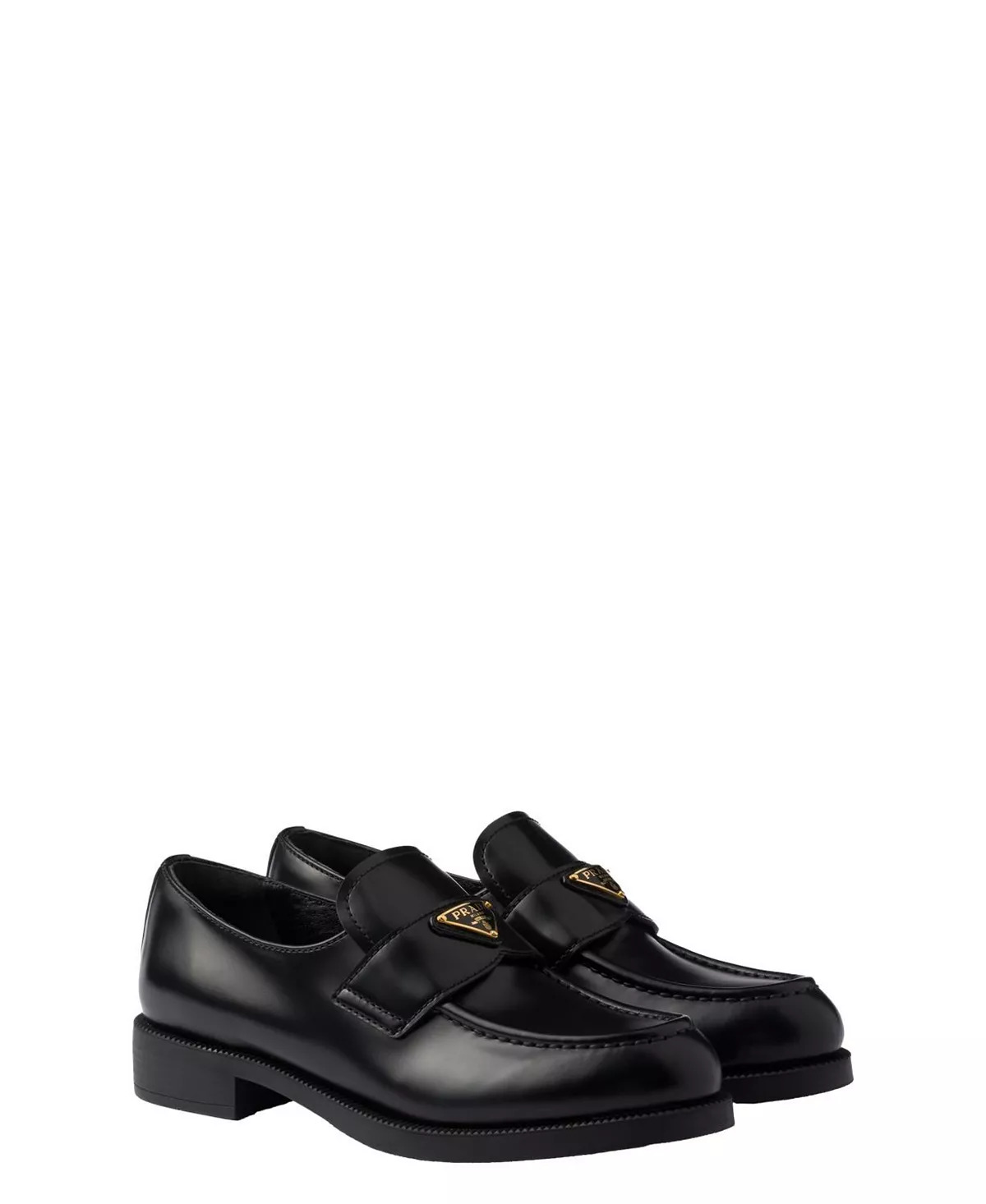 SIZE & FIT - Heel Height: 1" PRODUCT DETAILS - Round toe - Slip on closure - Enameled metal triangle logo - Leather - Imported Web ID: 5571886