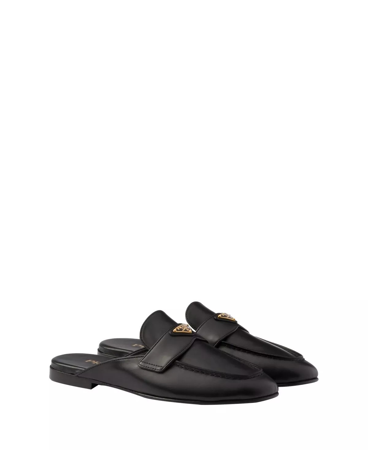 SIZE & FIT - Fits true to size - Heel Height: 0.4" PRODUCT DETAILS - Round toe - Enameled metal triangle logo - Leather - Imported Web ID: 5576096