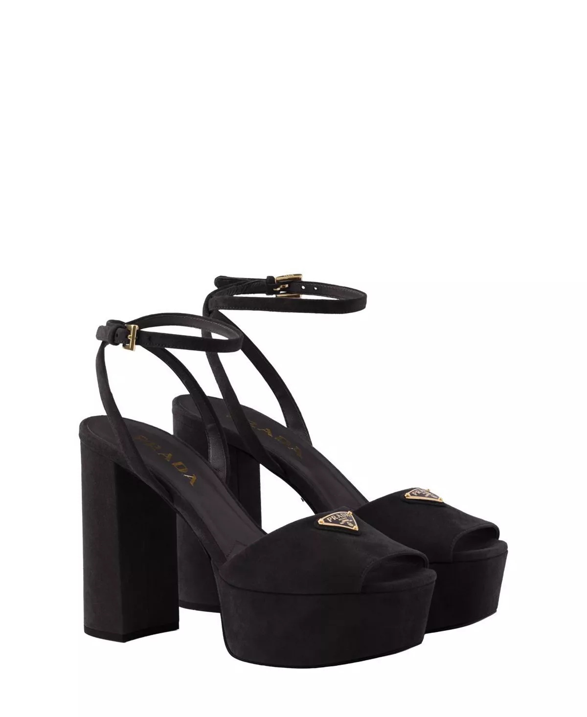 SIZE & FIT - Fits true to size - Heel height: 115 mm / 4.5" - Platform height: 40 mm / 1.5" PRODUCT DETAILS - Straps with logo-engraved buckles - Enameled metal triangle logo - Leather and rubber sole with metal lettering logo - Suede-covered heel and platform - Leather - Imported Web ID: 5559925