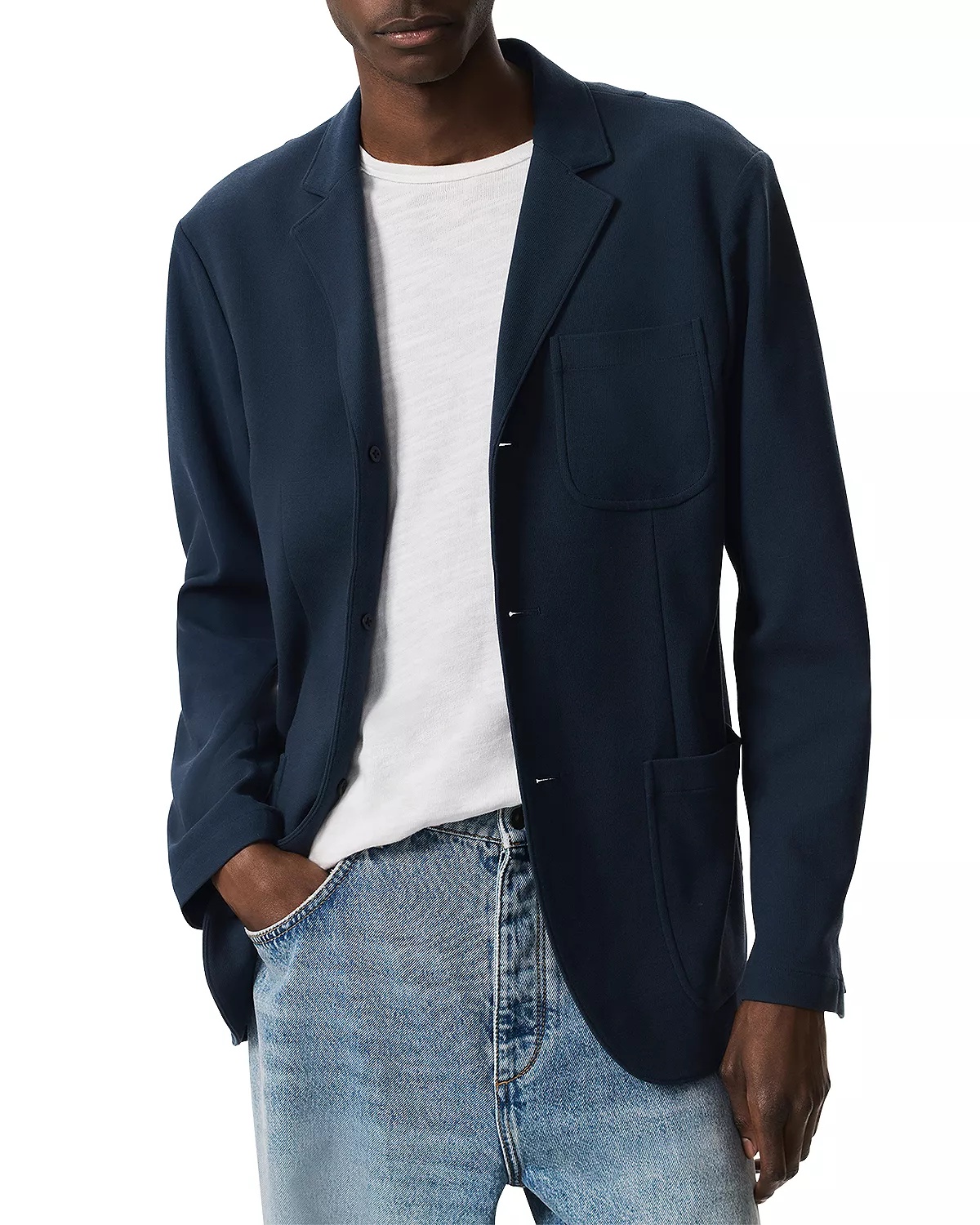 SIZE & FIT - Fits true to size, order your normal size - Designed for a classic fit - Center back length 29.5", chest 43", sleeve length 35.5", based on a size medium PRODUCT DETAILS - Notch lapel - Three-button closure - Long sleeves - Three front patch pockets - Imported Web ID: 5431606 MATERIAL & CARE - 60% cotton/40% polyamide - Dry clean