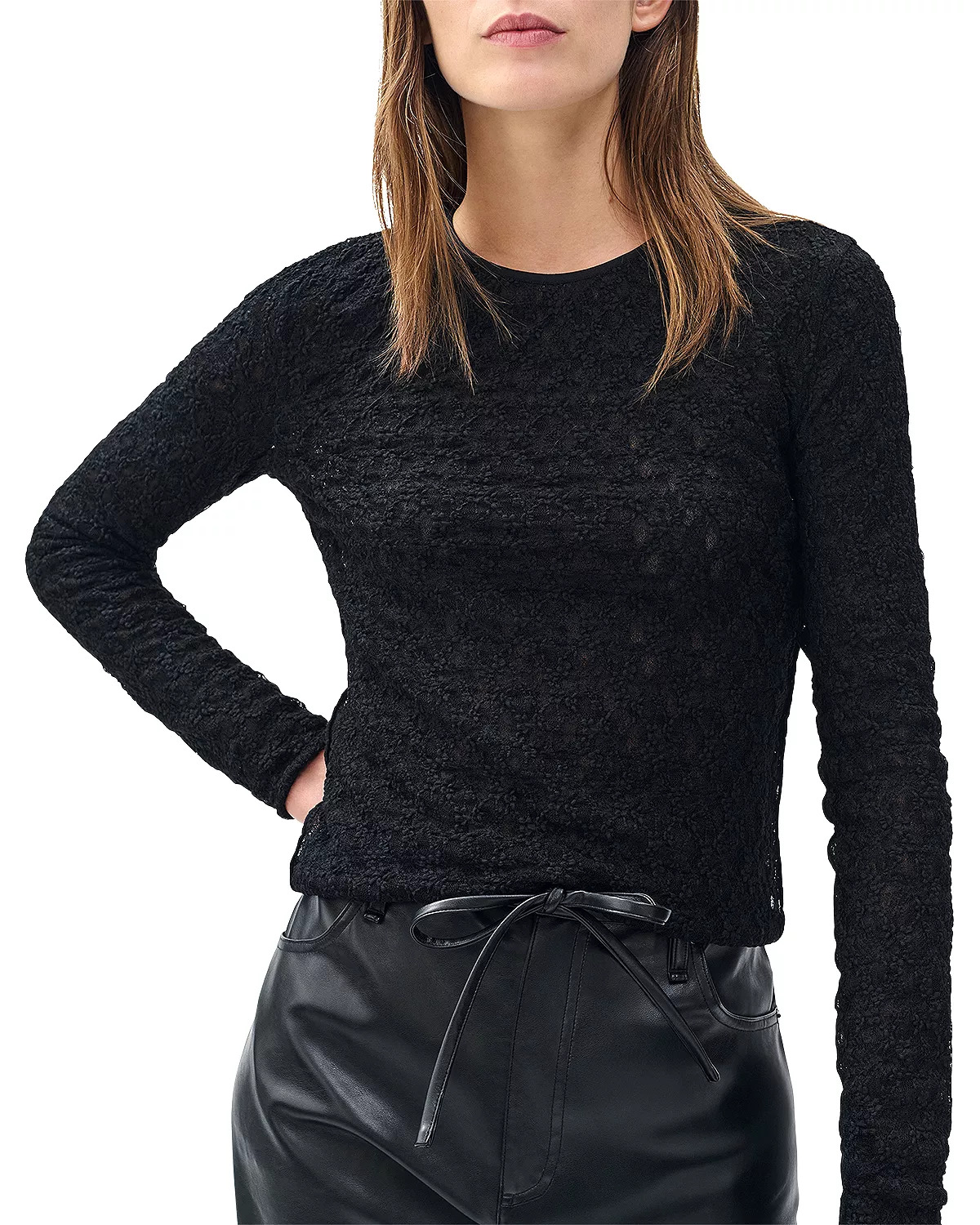 SIZE & FIT - Fits true to size, order your normal size - Designed for a slim fit - Approx. 22.25" long from high point shoulder to hem, based on a size small PRODUCT DETAILS - Crewneck - Long sleeves - Pullover style - Allover lace design - Imported Web ID: 5593440 MATERIAL & CARE - Polyamide/spandex - Hand wash