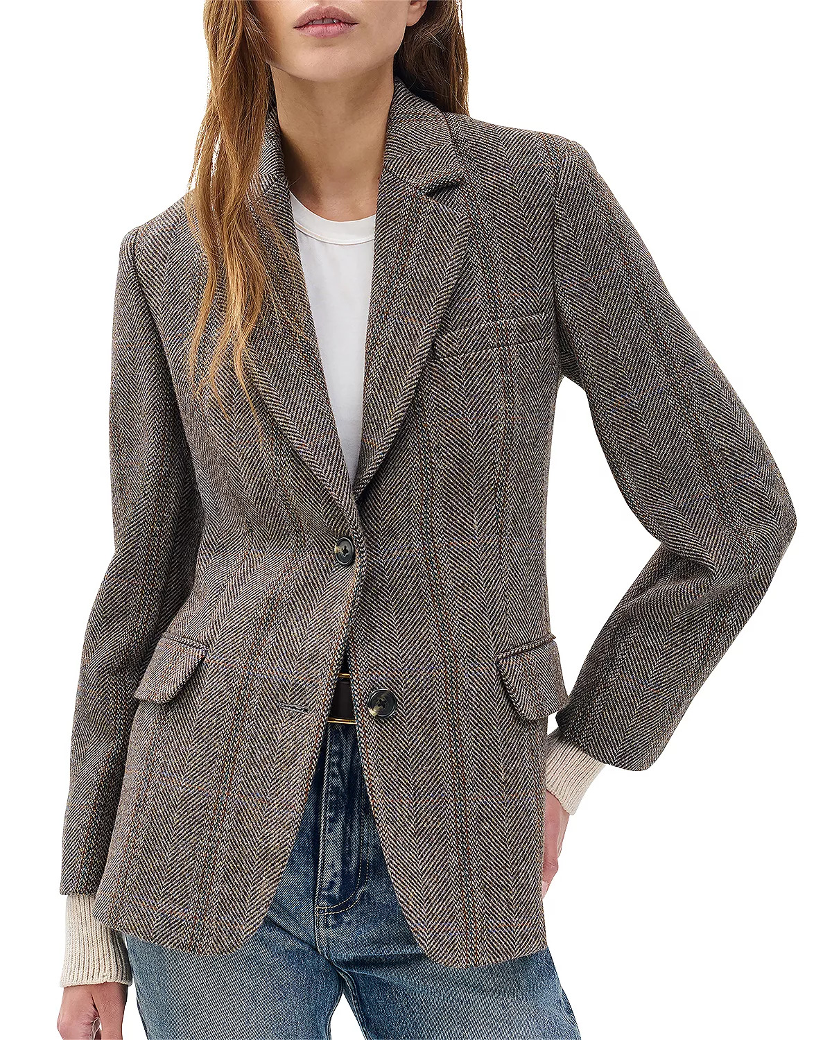 SIZE & FIT - Fits true to size, order your normal size - Designed for a relaxed fit - 28.5" front from high point shoulder, 27.5" from center back neck to hem - 35.5" chest, 32" sleeve from center back neck PRODUCT DETAILS - Notch lapel - Button front closures - Long sleeves with contrast sweater cuffs - Welt pocket at left chest - Flap pockets at front - Removable sweater detail at collar and front - Lined - Imported Web ID: 5593426 MATERIAL & CARE - 100% wool/ shell 2: 60% cotton/30% polyamide, 10% wool / lining: 51% viscose, 49% polyester - Dry clean