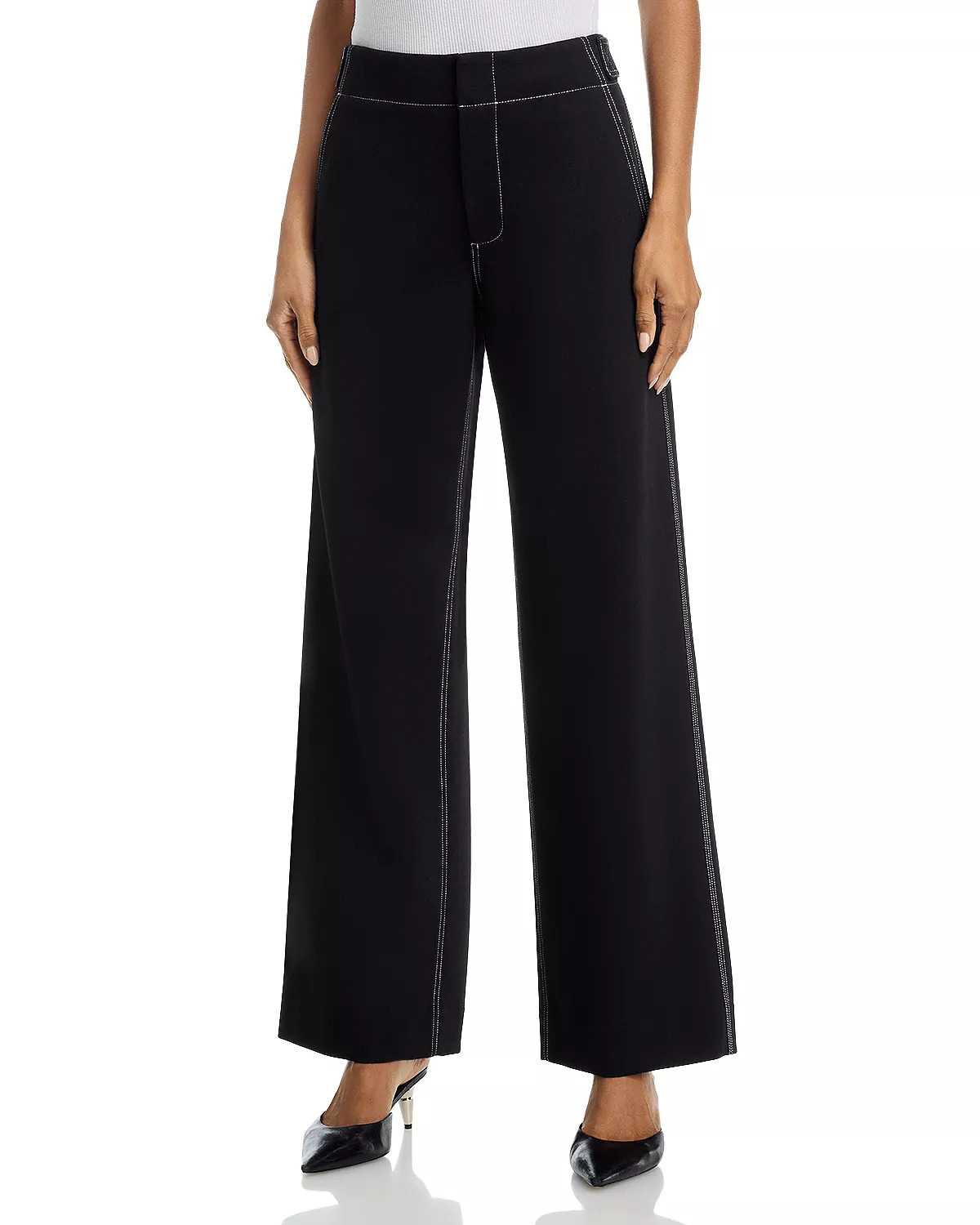 SIZE & FIT - Fits true to size, order your normal size - Designed for a relaxed fit - 11.5" rise, 31" inseam, 21" leg opening, based on a size 4 PRODUCT DETAILS - Zip fly with hook closure - Button tabs at waist - Side-seam pockets at hips - Patch pocket at back - Wide-leg silhouette - Contrast stitching - Imported Web ID: 5593433 MATERIAL & CARE - 66% viscose/30% nylon/4% elastane - Machine wash