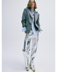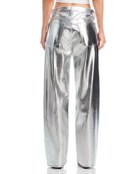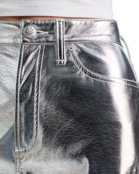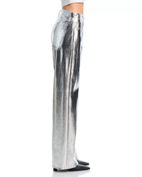Logan Faux Leather Wide Leg Jeans in Silver
