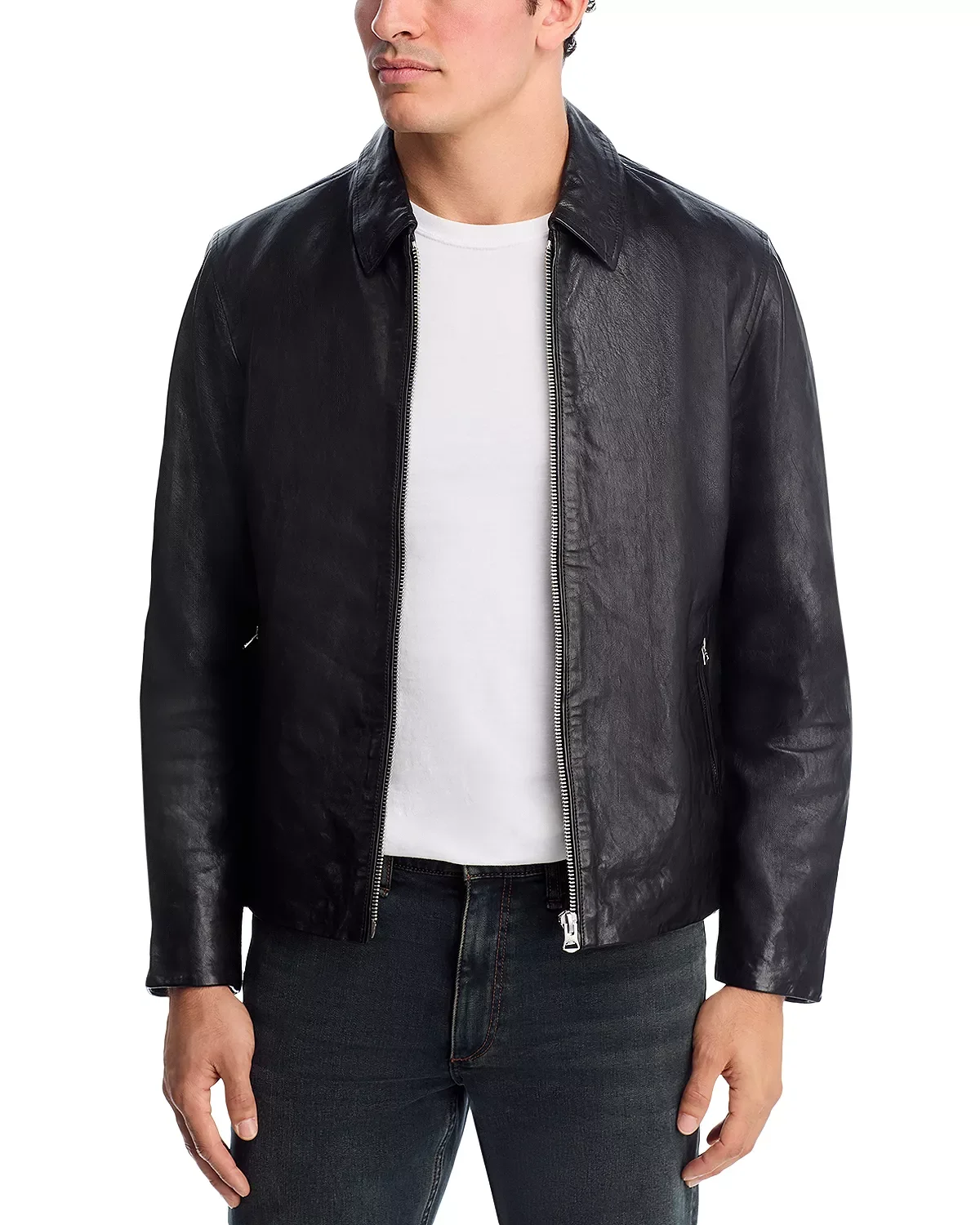 SIZE & FIT - Fits true to size, order your normal size - Designed for a regular fit PRODUCT DETAILS - Spread collar - Full-zip closure - Long sleeves - Two side zip pockets - Imported Web ID: 5610484 MATERIAL & CARE - Shell: leather; lining: 100% polyester - Professional leather clean