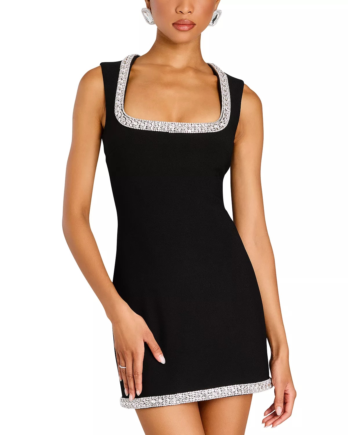 SIZE & FIT - Fits true to size, order your normal size or order one size up if in between sizes - Fitted at the bust, waist and the hip - Designed for a mini length - Approx. 30" long based on size XS PRODUCT DETAILS - Heavyweight crepe fabric - Embellished scoop neck - Zipper closure at back - Sleeveless - Embellished at hem - Lined - Please note that this dress will be delivered with a black b-tag attached, with instructions for removal included. If the b-tag is removed, the dress cannot be returned. - Imported Web ID: 5333654 MATERIAL & CARE - 100% polyester - Dry clean