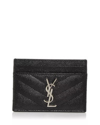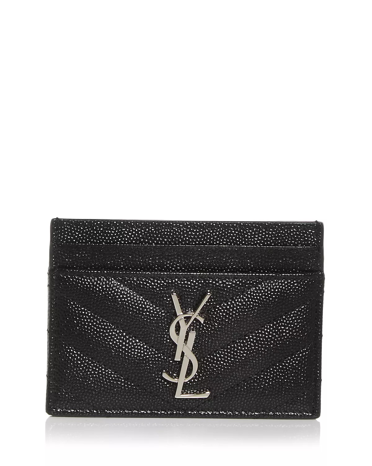 PRODUCT DETAILS - Dimensions: 4"W x 0.1"D x 2.8"H - Four exterior card slots, interior slip compartment - Chevron topstitch quilted detailing - Leather lining - Saint Laurent returns and exchanges of full-price merchandise are only accepted online and at Saint Laurent Accessory Boutiques at Bloomingdale's, including 59th St., Roosevelt Field, Century City, Valley Fair, Glendale, and South Coast Plaza. - 100% Lambskin or 95% Calfskin Leather, 5% Brass - Made in Italy Web ID: 4180496