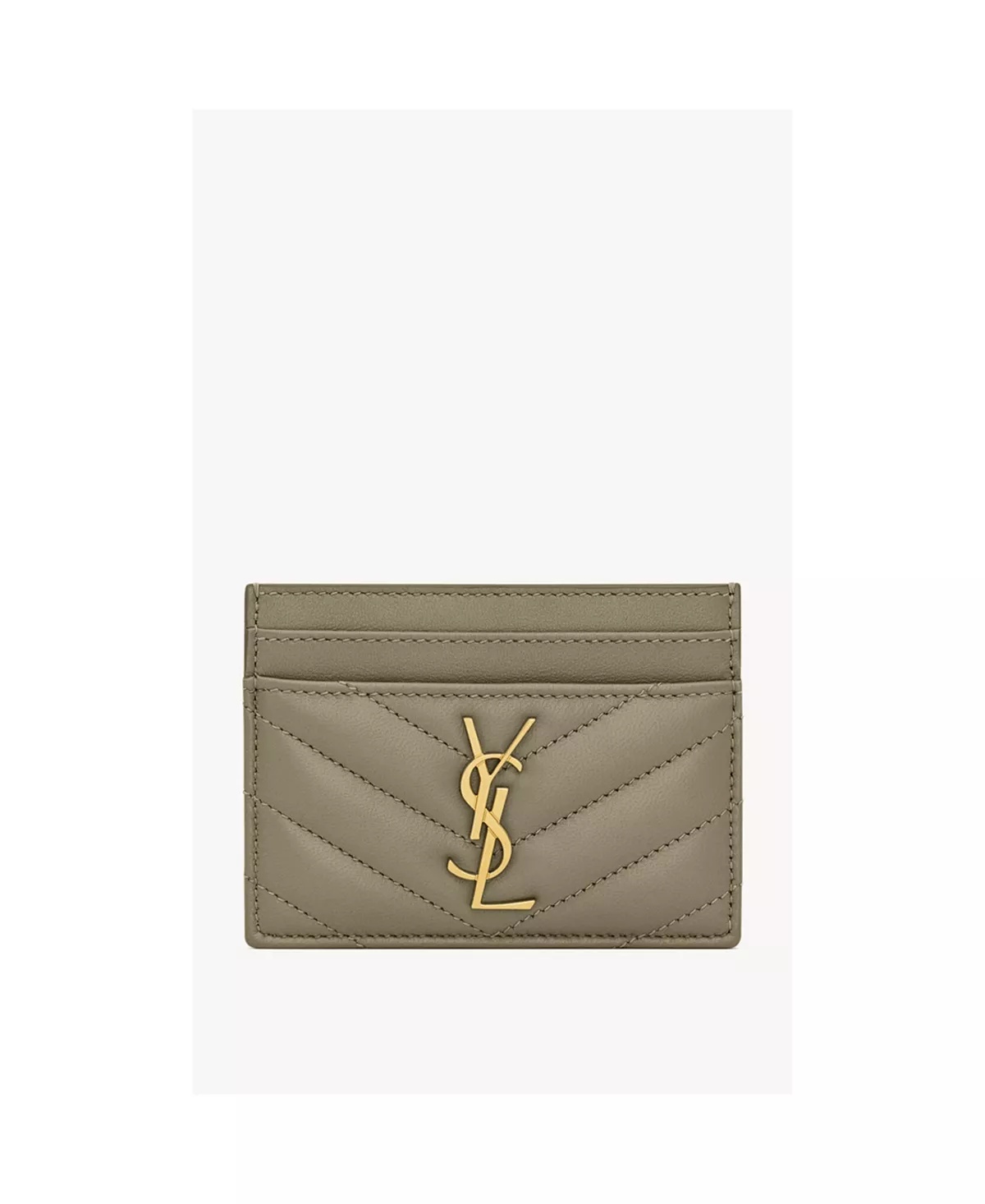 PRODUCT DETAILS - Dimensions - 0.1"W x 4"D x 2.8"H - Open top closure - One main pocket compartment - Saint Laurent returns and exchanges of full-price merchandise are only accepted online and at Saint Laurent Accessory Boutiques at Bloomingdale's, including 59th St., Roosevelt Field, Century City, Valley Fair, Glendale, and South Coast Plaza. - 70% Lambskin, 30% Brass - Made in Italy Web ID: 4180496