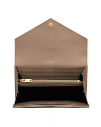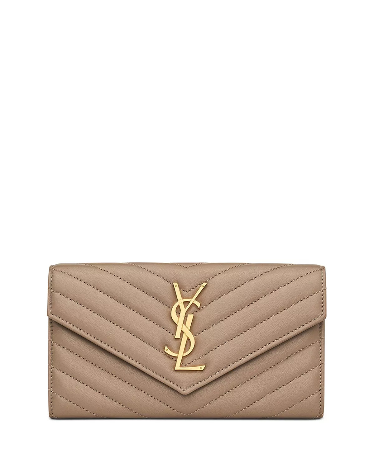 SIZE & FIT - After rising to the helm of Dior at just 21 years old, Yves Saint Laurent set out to launch his eponymous label in 1961. Five years later, the Parisian couture house - would make major waves with a first-of-its-kind capsule of luxury ready-to-wear—dubbed Saint Laurent Rive Gauche— which - saw the debut of iconic styles like the Le Smoking tuxedo. That revolutionary spirit which blurred the lines between masculine and feminine, sharp tailoring and - sensuality, would carry through the collections that followed and cement Yves Saint Laurent's status as one of the twentieth century's most celebrated designers. - Since taking the reins as creative director in 2016, Anthony Vaccarello has lent his signature edge to Saint Laurent's legacy by reintroducing cult styles like the Lou handbag and Tribute sandals. PRODUCT DETAILS - Dimensions - 1.1" W x 7.4" D x 4.3" H - Snap-button closure - Two interior compartments, interior zip pocket, two int slip pockets, twelve interior card slots - Quilted chevron detailing - Gold-tone, silver-tone or black logo hardware at front - Lined - Saint Laurent returns and exchanges of full-price merchandise are only accepted online and at Saint Laurent Accessory Boutiques at Bloomingdale's, including 59th St., Roosevelt Field, Century City, Valley Fair, Glendale, and South Coast Plaza. - Leather - Made in Italy Web ID: 4165960