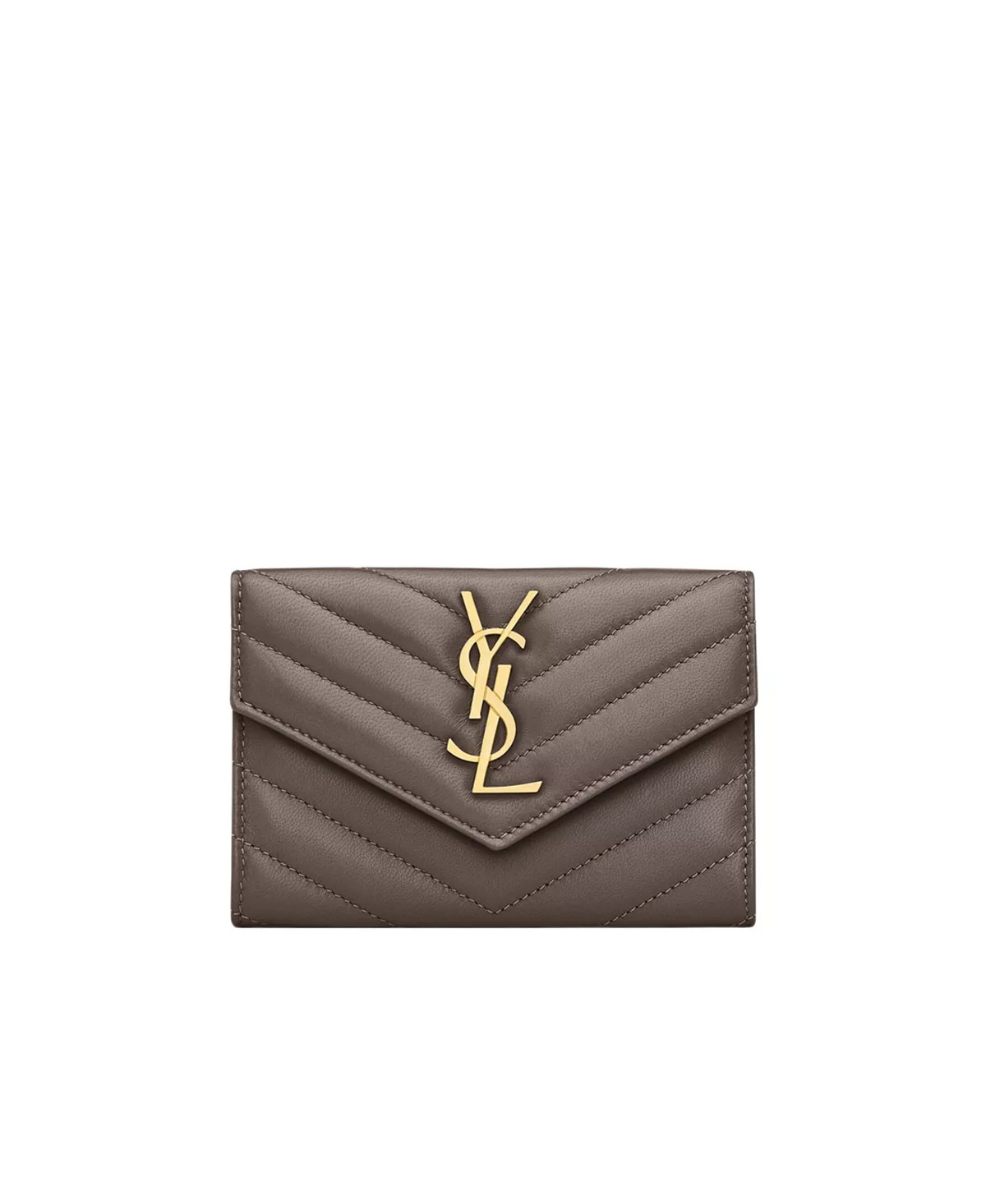 PRODUCT DETAILS - 8.2"W x 6.2"D x 1.1"H - Snap Button Closure - Interior: Four Card Slots, One Open Compartment - Saint Laurent returns and exchanges of full-price merchandise are only accepted online and at Saint Laurent Accessory Boutiques at Bloomingdale's, including 59th St., Roosevelt Field, Century City, Valley Fair, Glendale, and South Coast Plaza. - 100% Lambskin - Made in Italy Web ID: 4165981