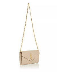 PRODUCT DETAILS - Strap can be worn single or doubled - 8.8"W x 5.5"D x 1.5"H - Dimensions: 8.9"W x 1.6"D x 5.5"H - Magnetic snap closure - Two interior compartments, ten card slots, one bill slot, one interior zip pocket - Quilted chevron detailing at front and back - Grosgrain lining - Saint Laurent returns and exchanges of full-price merchandise are only accepted online and at Saint Laurent Accessory Boutiques at Bloomingdale's, including 59th St., Roosevelt Field, Century City, Valley Fair, Glendale, and South Coast Plaza. - 100% Lambskin - Made in Italy Web ID: 5705825