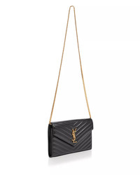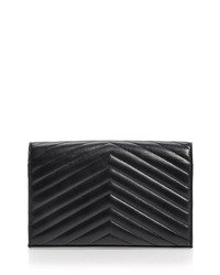PRODUCT DETAILS - Strap can be worn single or doubled - 8.8"W x 5.5"D x 1.5"H - Dimensions: 8.9"W x 1.6"D x 5.5"H - Magnetic snap closure - Two interior compartments, ten card slots, one bill slot, one interior zip pocket - Quilted chevron detailing at front and back - Grosgrain lining - Saint Laurent returns and exchanges of full-price merchandise are only accepted online and at Saint Laurent Accessory Boutiques at Bloomingdale's, including 59th St., Roosevelt Field, Century City, Valley Fair, Glendale, and South Coast Plaza. - 100% Lambskin - Made in Italy Web ID: 5705825