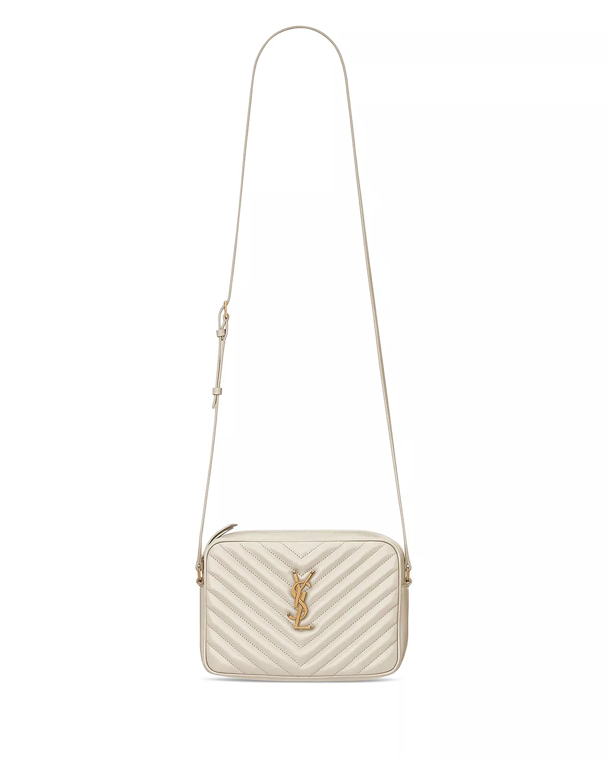 PRODUCT DETAILS - Adjustable strap length: 22.8" - Dimensions: 9"W x 2.3"D x 6.2"H - Zip closure - One exterior back slot pocket, one interior slot pocket - Grosgrain lining - Saint Laurent returns and exchanges of full-price merchandise are only accepted online and at Saint Laurent Accessory Boutiques at Bloomingdale's, including 59th St., Roosevelt Field, Century City, Valley Fair, Glendale, and South Coast Plaza. - 85% CALFSKIN LEATHER, 15% BRASS - Made in Italy Web ID: 4166057