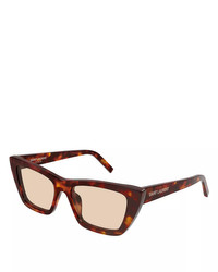SIZE & FIT - After rising to the helm of Dior at just 21 years old, Yves Saint Laurent set out to launch his eponymous label in 1961. Five years later, the Parisian couture house would make major waves - with a first-of-its-kind capsule of luxury ready-to-wear--dubbed Saint Laurent Rive Gauche--which saw the debut of iconic styles like the Le Smoking tuxedo. That revolutionary spirit which - blurred the lines between masculine and feminine, sharp tailoring and sensuality, would carry through the collections that followed and cement Yves Saint Laurent's status as one of the - twentieth century's most celebrated designers. Since taking the reins as creative director in 2016, Anthony Vaccarello has lent his signature edge to Saint Laurent's legacy by reintroducing - cult styles like the Lou handbag and Tribute sandals. PRODUCT DETAILS - 100% UV protection - Logo at temples - Lens width: 55 mm - Bridge width: 16 mm - Arm length: 145 mm - Includes hard case and cleaning cloth - Made in Italy Web ID: 3187581