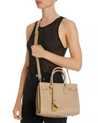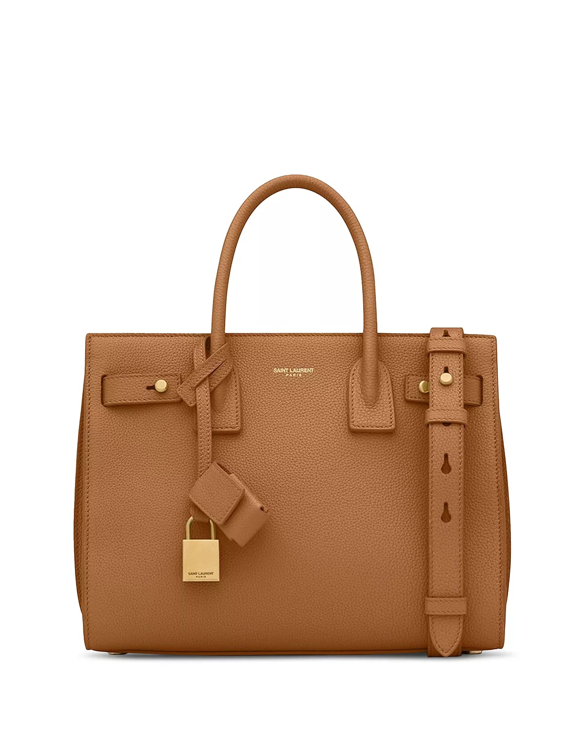 PRODUCT DETAILS - Removable adjustable shoulder strap, 18" drop - Double handles, 4" drop - 5.1" W x 10.2" D x 7.8" H - Open top - Interior removable zip pouch, divides bag into two compartments - Gusseted sides - Adjustable strap details at gussets - Gold-tone hardware - Protective metal feet - Removable logo padlock at handles, padlock key at interior - Logo at front - Suede lining - Saint Laurent returns and exchanges of full-price merchandise are only accepted online and at Saint Laurent Accessory Boutiques at Bloomingdale's, including 59th St., Roosevelt Field, Century City, Valley Fair, Glendale, and South Coast Plaza. - Leather - Made in Italy Web ID: 4470291