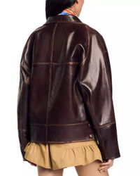 SIZE & FIT - Fits true to size, order your normal size - Designed for an oversized fit - Approx. 28" long PRODUCT DETAILS - Notched lapel - Front button closures - Long sleeves - Covered buttons at hem - Two side slash pockets - Lined - Made in India Web ID: 5190328 MATERIAL & CARE - 100% leather; lining: 55% polyester/45% viscose - Professional leather clean
