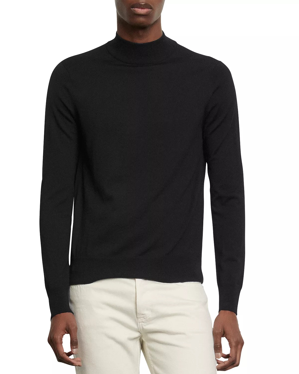 PRODUCT DETAILS - Fits true to size with a slightly slim silhouette; for a more classic fit, please order one size up - Designed for a slim fit - Model measurements: 6'1 height, 40" chest, 31" waist, 34" inseam, wearing a size medium - Mock turtleneck - Long sleeves - Straight hem - Ribbed trims - Imported Web ID: 3450029 MATERIAL & CARE - 100% wool - Hand wash or dry clean