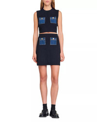 SIZE & FIT - Fits true to size, order your normal size - Designed for a flared fit - 17.5" length, 25.6" waist, 41" hip circumference, based on a size 36 PRODUCT DETAILS - Elasticated high waist - Buttoned patch pockets in denim - Short ribbed-knit design - Please note that this merchandise will be delivered with a branded return tag attached. If the branded return tag is removed, the merchandise cannot be returned. - Imported Web ID: 5632938 MATERIAL & CARE - 52% viscose/46% polyamide/2% elastane; pocket: 91% cotton/4% polyester/4% viscose/1% lyocell - Hand wash or dry clean