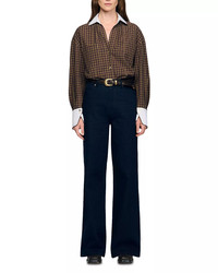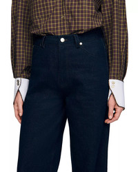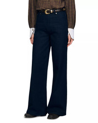 SIZE & FIT - Fits true to size, order your normal size - Mid rise: 11" - Long inseam: 33" - Designed for a boxy fit - Model measurements: 5'10" height, 33" bust, 25" waist, 35" hips, wearing a size 36 PRODUCT DETAILS - Zip fly with button closure, five-pocket silhouette - Tonal stitching, silver-tone hardware, belt loops - Leather jacron - Blue wash, wide-leg silhouette - Please note that this merchandise will be delivered with a branded return tag attached. If the branded return tag is removed, the merchandise cannot be returned. - Imported Web ID: 5632929 MATERIAL & CARE - 100% cotton; lining: 80% polyester/20% cotton; 80% polyester/20% cotton - Dry clean