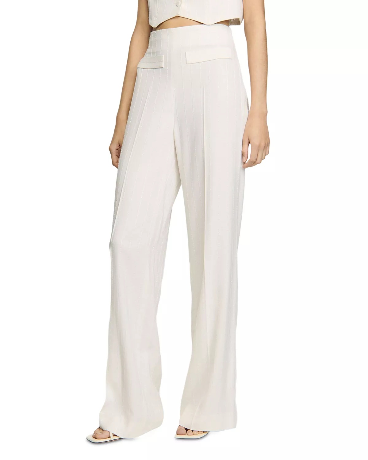 SIZE & FIT - Fits true to size, order your normal size - 12" rise, 34.1" inseam, 24.4" leg opening, 29.2" waist, 39.4" hip circumference, based on a size 36 FR/4 US - Model is wearing a size 36 FR/4 US PRODUCT DETAILS - Side zipper closure - Flap welt pockets at side front - Tonal stripes with sequined accents - Straight-leg silhouette - Please note that this merchandise will be delivered with a branded return tag attached. If the branded return tag is removed, the merchandise cannot be returned. - Imported Web ID: 5384439 MATERIAL & CARE - 95% viscose/3% polyamide/2% polyester, lining: 100% cotton - Dry clean