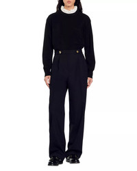 SIZE & FIT - Fits true to size, order your normal size - 11" rise, 31" inseam, based on a size 36 FR/4 US PRODUCT DETAILS - Banded waist, button tabs - Zip fly with hook-and-bar closure - Side slit pockets, back welt pockets - Pleated front - Wide-leg silhouette - Cuffed hems - Imported Web ID: 5190453 MATERIAL & CARE - Main: 55% polyester/45% virgin wool; lining: 100% cotton - Dry clean