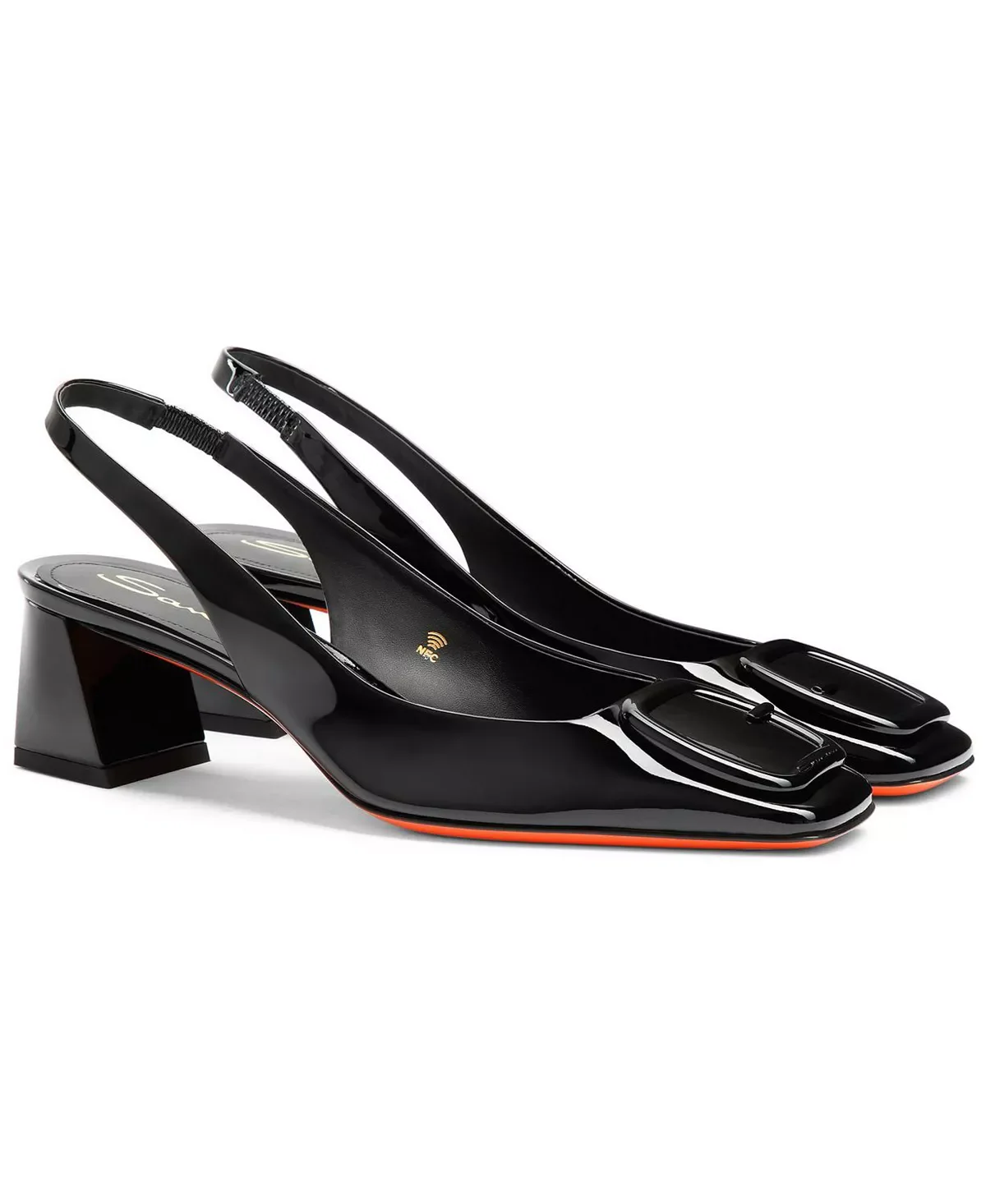 Women's Patent Leather Mid-Heel Slingback Pumps