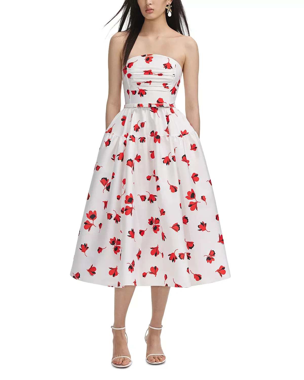 SIZE & FIT - Fits true to size, order your normal size - Fitted at bust and waist, relaxed at hip - Non-stretch fabric - Designed to hit at mid calf - Approx. 45" from high point shoulder to hem, based on a size 4 US/8 UK PRODUCT DETAILS - Straight neck - Sleeveless - Floral-print taffeta fabric - Removable belt - Midi silhouette - Back zip closure - Lined - Imported Web ID: 5552429 MATERIAL & CARE - Shell and lining: 100% polyester - Dry clean