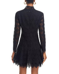 SIZE & FIT - Fits true to size, order your normal size - Fitted through bust, waist and hips - Designed to hit above the knee - Approx. 36" from high point shoulder to hem, based on a size 4 - Model measurements: 5'10" height, 33.5" bust, 23.5" waist, 34.5" hips, wearing a size 4 PRODUCT DETAILS - Mock neck - Long sleeves - Center back zip closure - Mini silhouette - Allover lace fabrication - Scalloped hemline - Lined - Please note that this dress will be delivered with a black b-tag attached, with instructions for removal included. If the b-tag is removed, the dress cannot be returned. - Imported Web ID: 4816122