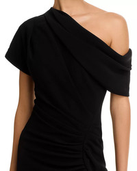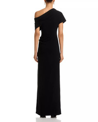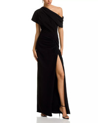 Kally one-shoulder draped pleated crepe gown Black