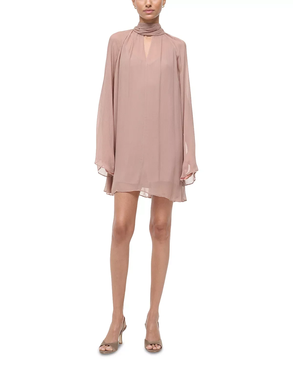 SIZE & FIT - Fits true to size, order your normal size - Designed for a mini length - 34" length - Model measurements: 5'10" height PRODUCT DETAILS - High neck with keyhole - Zipper closure at back - Long flowy sleeves - Slip lined - Imported Web ID: 5644469 MATERIAL & CARE - 100% viscose; slip: 100% polyester - Dry clean