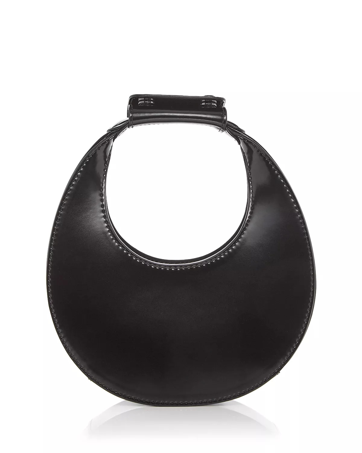 PRODUCT DETAILS - Top handle - Removable, adjustable long shoulder strap. - Can be worn as a shoulder or handbag - Dimensions: 7.25"W x 2.25"D x 8.5"H - Snap closure - Slightly smaller than the Mini Moon, perfect for evening - Leather - Imported Web ID: 5374815