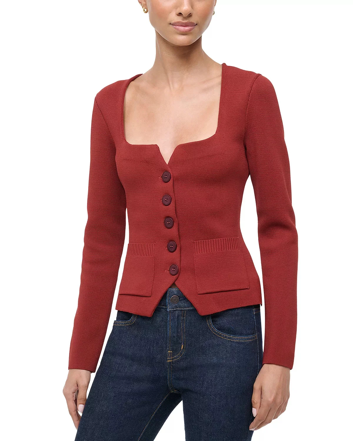 SIZE & FIT - Fits true to size, order your normal size - Model measurements: 5'10" height, wearing a size small PRODUCT DETAILS - Notched neck - Long sleeves - Front button closures - Side patch pockets - Imported Web ID: 5845906 MATERIAL & CARE - 80% viscose/20% nylon - Dry clean