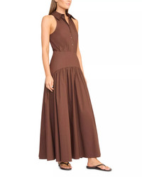 SIZE & FIT - Fits true to size, order your normal size - Designed for a floor-length look - Approx. 55" long - Model measurements: 5'10" height, 33" bust, 25" waist, 35" hips, wearing a size small PRODUCT DETAILS - Spread collar - Partial button front closures - Sleeveless - Drop-waist - Please note that this dress will be delivered with a black b-tag attached, with instructions for removal included. If the b-tag is removed, the dress cannot be returned. - Imported Web ID: 5402636 MATERIAL & CARE - 98% cotton/2% spandex - Dry clean